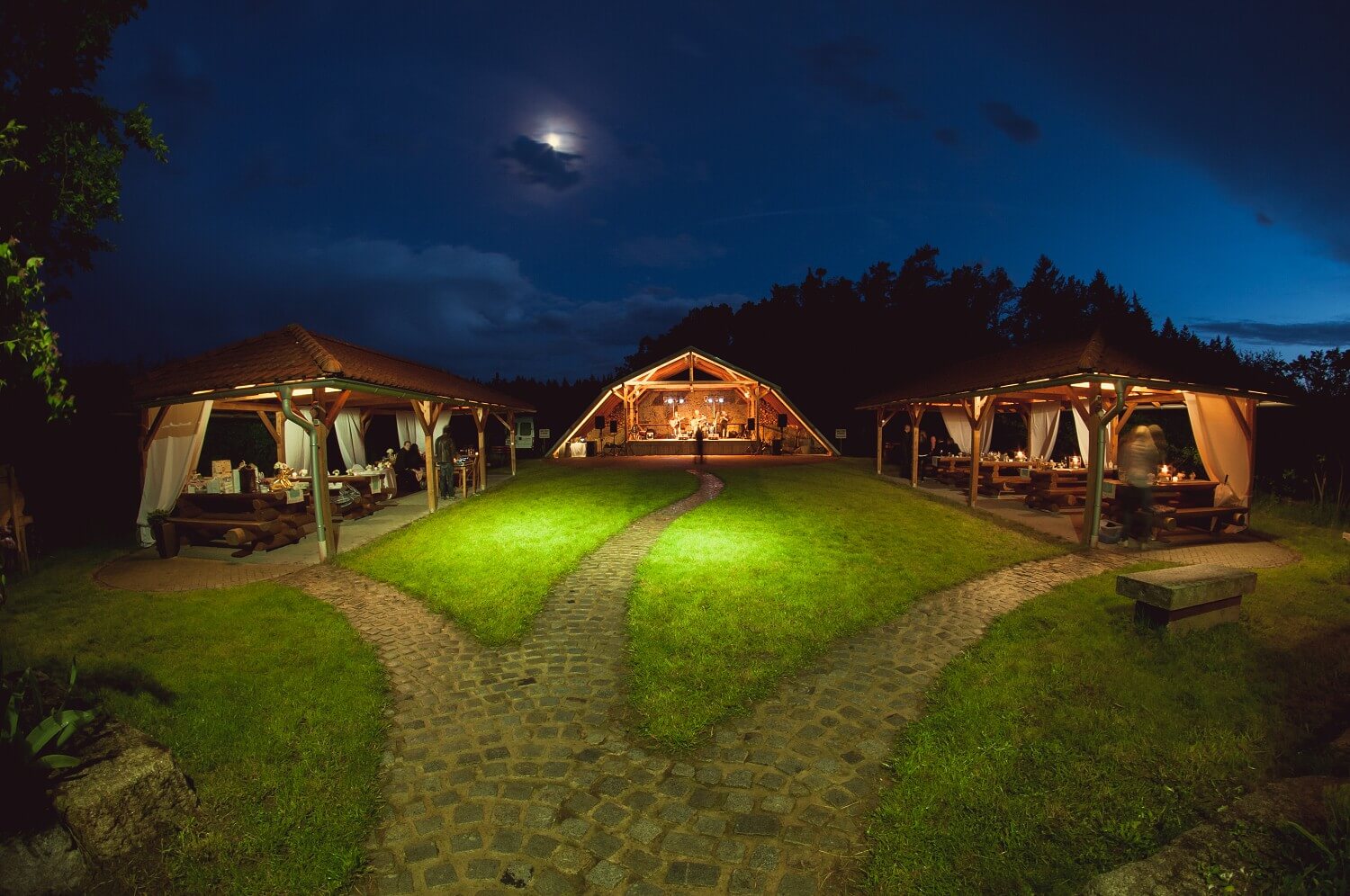 Für Ihre Hochzeitsfeier können Sie aus mehreren wunderschönen Orten in der Umgebung wählen. Beliebte Optionen sind beispielsweise die Staatsburg Nové Hrady, die historische Festung Žumberk oder direkt der Garten der Pension Kamínek, wo auch die Möglichkeit einer Großbildprojektion der Trauung besteht. Die Zeremonie kann auch an einem der romantischen Orte in der umliegenden Natur stattfinden, die Ihrem Hochzeitstag eine einzigartige Atmosphäre verleihen.